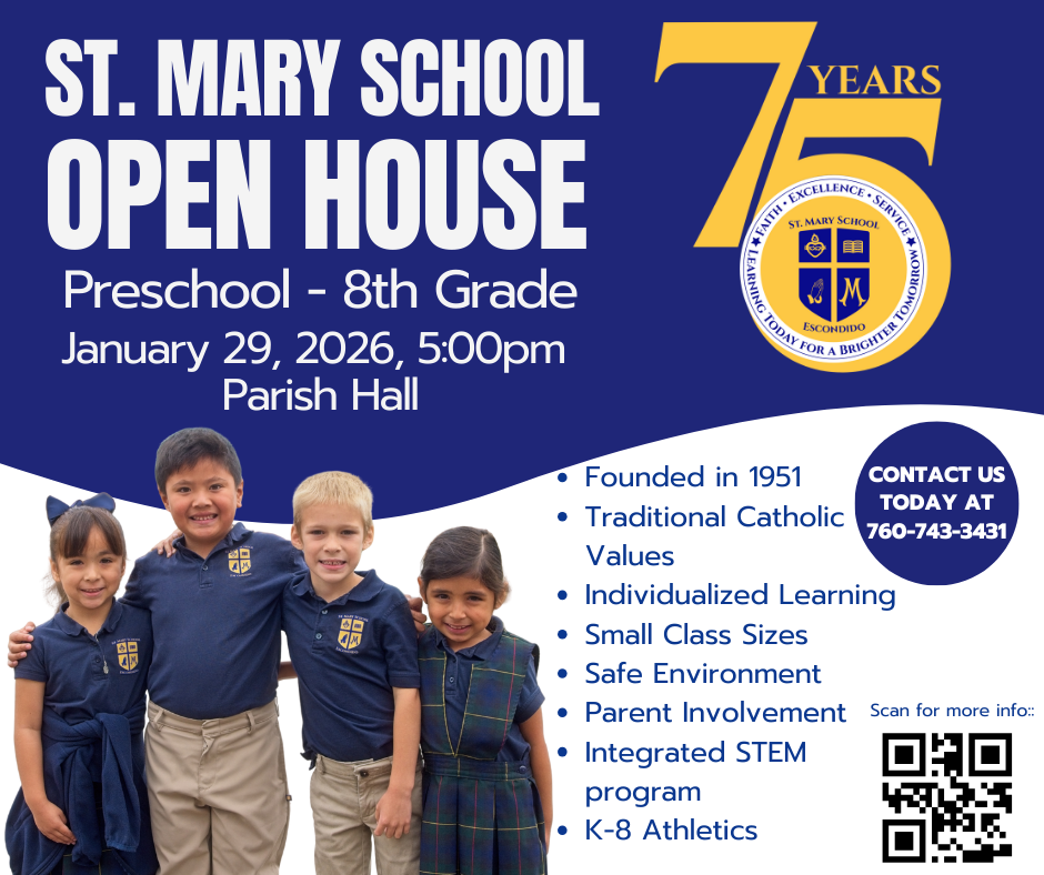 Start Your Admissions Journey at St. Mary School: A faith-centered Preschool–8th Grade Catholic education rooted in academic excellence, community, and service. Schedule a Tour RSVP for Open House Request More Info Begin Application